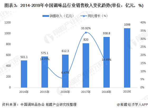 注:中國(guó)調(diào)味品協(xié)會(huì)尚未發(fā)布最新數(shù)據(jù),2019年數(shù)據(jù)為前瞻根據(jù)行業(yè)發(fā)展形勢(shì)測(cè)算所得,最終數(shù)據(jù)以協(xié)會(huì)公布為準(zhǔn)。