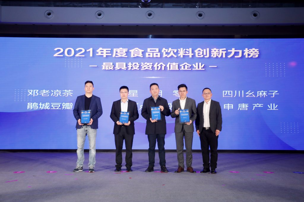 ? ? ? ?會上,每日經(jīng)濟新聞、清華大學經(jīng)濟管理學院中國企業(yè)研究中心聯(lián)袂發(fā)布“2021中國食品飲料行業(yè)創(chuàng)新力榜”,助力發(fā)現(xiàn)行業(yè)優(yōu)質(zhì)企業(yè)、品牌和創(chuàng)新力量。丁點兒股份作為川調(diào)行業(yè)優(yōu)秀企業(yè),獲得各位專家評審團的一致認同,入選2021中國食品飲料行業(yè)創(chuàng)新力榜“最具投資價值企業(yè)”。