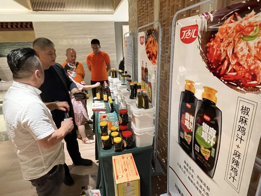 ? ? ? 大會(huì)現(xiàn)場(chǎng),丁點(diǎn)兒股份帶來了在史正良大師的指導(dǎo)下研發(fā)推出的干鍋醬以及麻得倒花椒油、椒麻雞汁、川味辣鹵、油醋汁等企業(yè)明星產(chǎn)品進(jìn)行展示,豐富的產(chǎn)品種類給大家留下深刻印象,讓大家紛紛索取樣品。