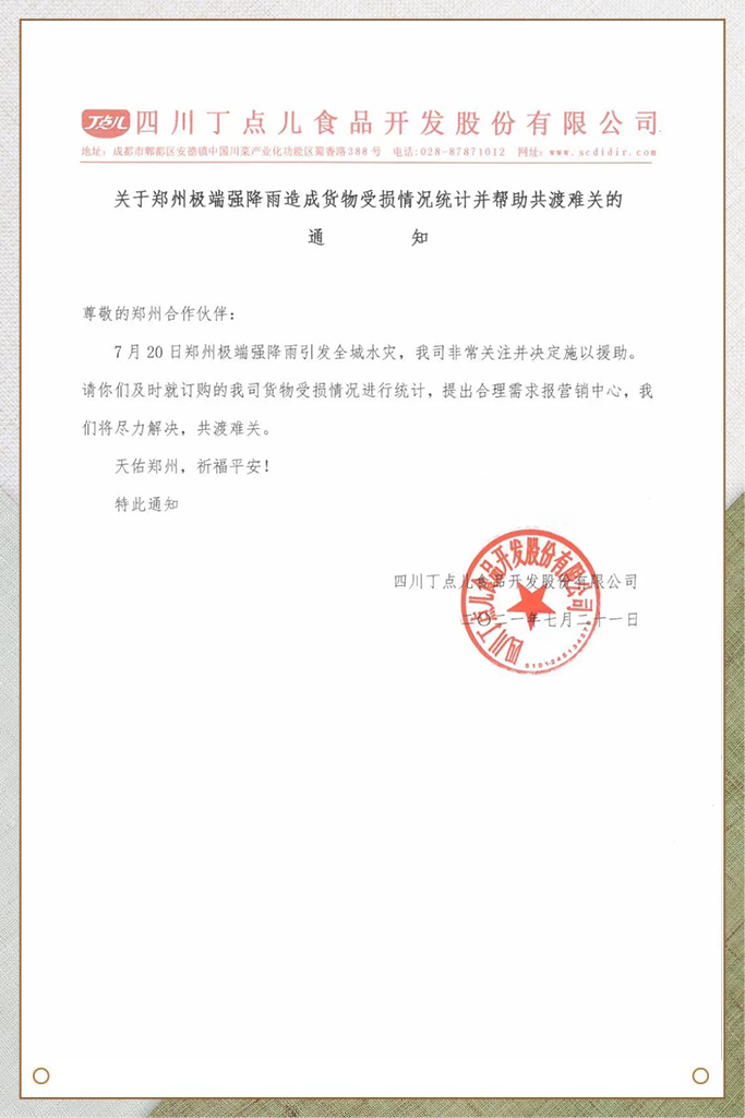 關(guān)于鄭州極端強降雨造成貨物受損情況統(tǒng)計并幫助共度難關(guān)的通知