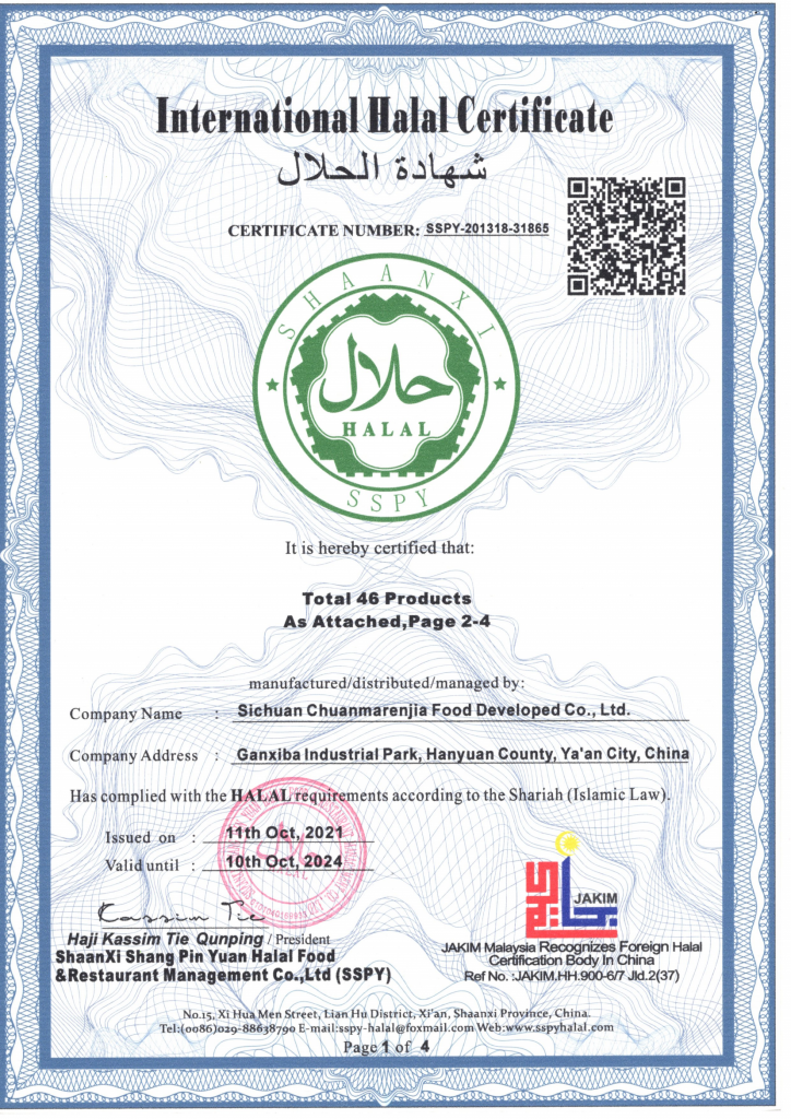 ? ? ? ?日前,丁點(diǎn)兒股份旗下全資子公司四川川麻人家食品開(kāi)發(fā)有限公司通過(guò)(認(rèn)證機(jī)構(gòu))“國(guó)際清真認(rèn)證”,這標(biāo)志著丁點(diǎn)兒股份在“川味國(guó)際化”進(jìn)程中又向前邁進(jìn)了重要一步,川麻人家已具備包括所有伊斯蘭國(guó)家在內(nèi)的調(diào)味品出口業(yè)務(wù)資質(zhì)。