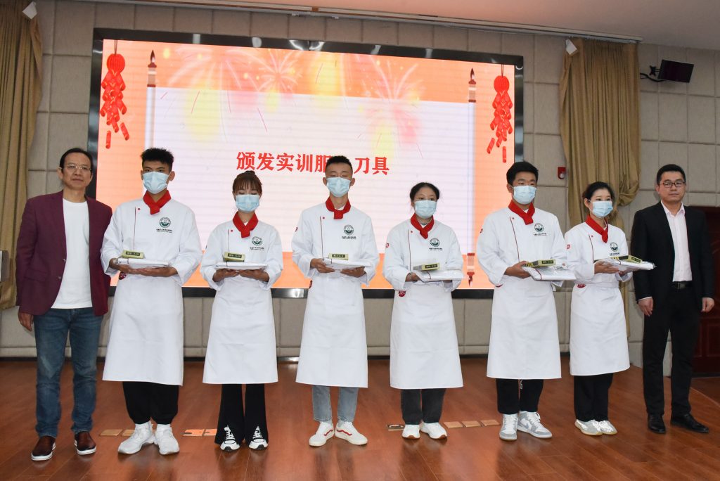 ? ? ? ?“工欲善其事,必先利其器”,為讓學(xué)生更好掌握烹飪技能,感受烹飪魅力,丁點(diǎn)兒股份向?qū)W院捐贈了專業(yè)服裝、刀具等教學(xué)實訓(xùn)用品,并現(xiàn)場分發(fā)給21級新生代表。