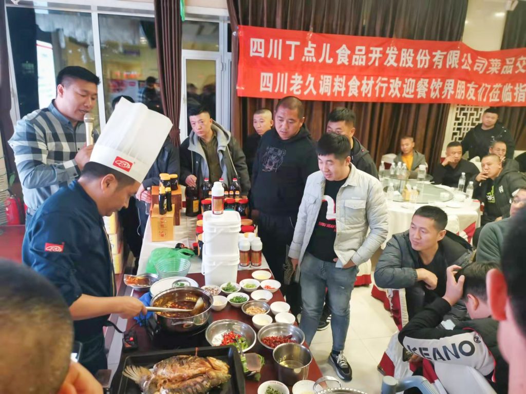 ? ? ? ?為讓大家更直觀感受標(biāo)準(zhǔn)化川味復(fù)合調(diào)味料的魅力,丁點(diǎn)兒產(chǎn)品應(yīng)用工程師運(yùn)用老壇酸菜醬、干鍋醬、椒麻雞汁、川味辣鹵調(diào)味料等企業(yè)標(biāo)準(zhǔn)化川味復(fù)合調(diào)味料進(jìn)行現(xiàn)場(chǎng)操作演示,快速烹飪出酸菜魚、干鍋兔、椒麻雞、辣鹵等一道道菜品色香味俱全。簡(jiǎn)單便捷的操作方式,獲得了大家的一致認(rèn)可,正宗出色的味道,征服了所有人的味蕾。