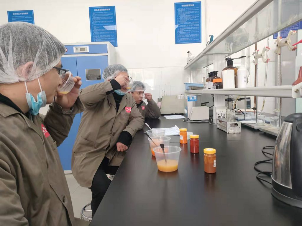 現(xiàn)場品控人員正進(jìn)行產(chǎn)品感官品評(píng)