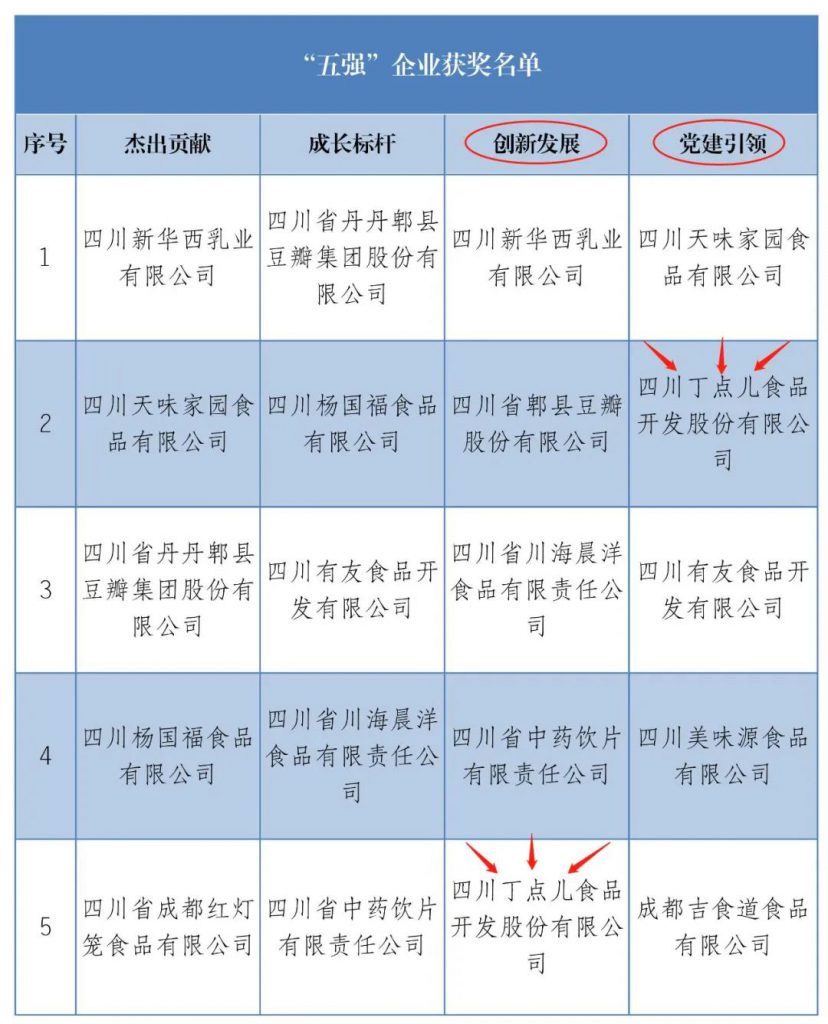? ? ? ? 作為園區(qū)標(biāo)桿企業(yè),丁點(diǎn)兒股份獲評(píng)創(chuàng)新發(fā)展“五強(qiáng)”企業(yè)和黨建引領(lǐng)“五強(qiáng)”支部雙項(xiàng)榮譽(yù),董事長(zhǎng)任康榮獲招商引智“五好”個(gè)人稱號(hào)。這是郫都區(qū)川菜產(chǎn)業(yè)城管理委員會(huì)對(duì)丁點(diǎn)兒股份的高度認(rèn)同及期望。