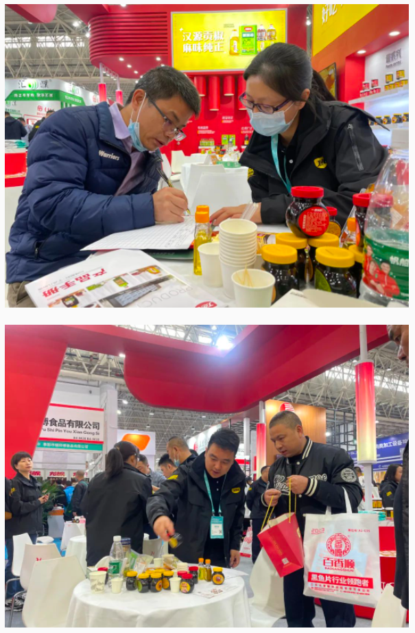 丁點兒展位上,公司流通系列、定制系列、電商系列、預制菜系列產(chǎn)品吸引了眾多參觀者駐足咨詢和體驗。用丁點兒產(chǎn)品烹飪的干鍋掌中寶、川式椒麻雞、酸菜魚等菜品香飄四溢,現(xiàn)場試吃后,不少客戶迫不及待和公司人員洽談,尋求合作。