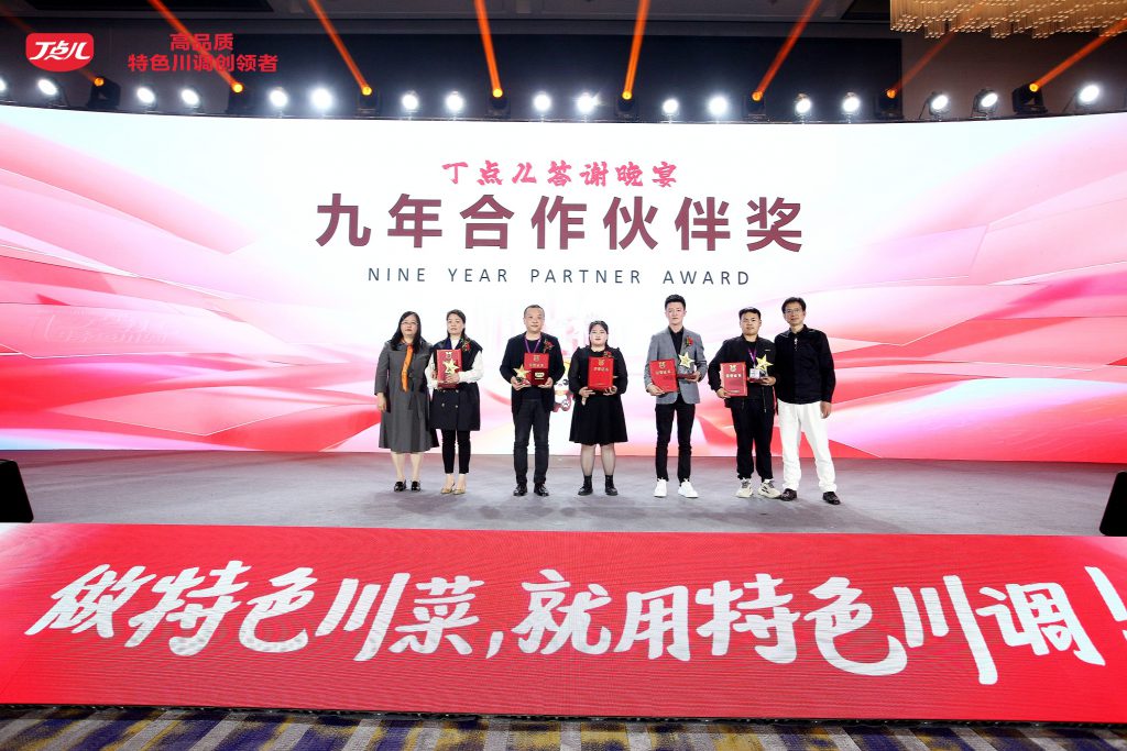 答謝晚宴上,丁點兒股份為貢獻(xiàn)卓越的經(jīng)銷商伙伴頒發(fā)了第一季度開門紅回款獎和九年合作伙伴獎。面對激烈競爭,他們迎難而上,始終以飽滿的熱情、堅定的態(tài)度,積極開拓市場,支持品牌發(fā)展,是丁點兒股份當(dāng)之無愧的英雄。