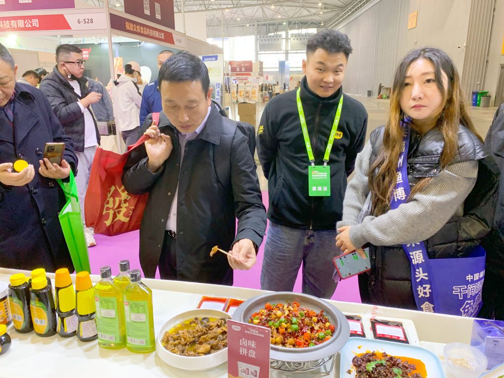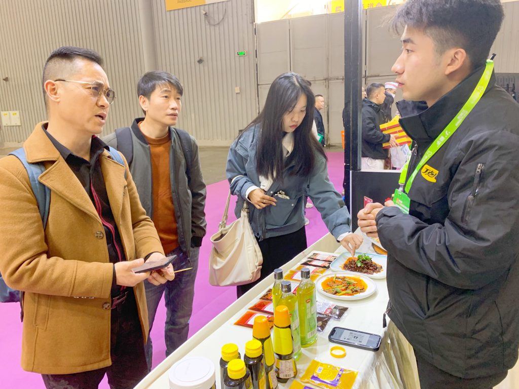 用丁點兒干鍋醬、椒麻雞汁、老壇酸菜醬等烹制的干鍋掌中寶、川式椒麻雞、酸菜魚片等菜品色香味俱全,為參展觀眾帶來了看得見、聞得到、吃得到的美食體驗?,F(xiàn)場試吃后,許多觀眾紛紛向公司業(yè)務(wù)經(jīng)理咨詢、了解,尋求合作。