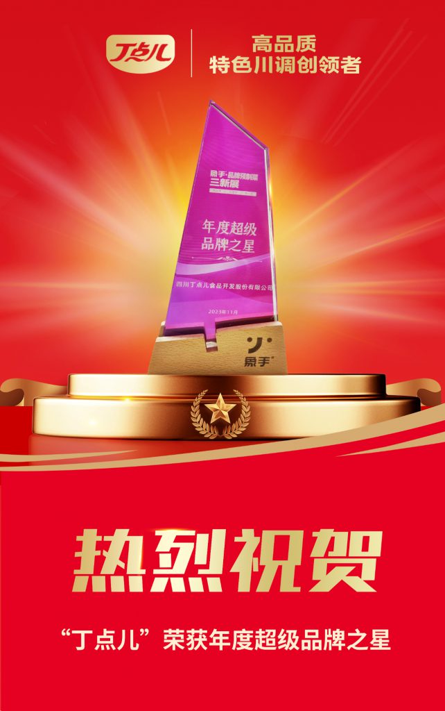 作為高品質(zhì)特色川調(diào)創(chuàng)領(lǐng)者,丁點兒食品全力打造高質(zhì)量“丁點兒”品牌,經(jīng)過多年積累和沉淀,憑借高品質(zhì)、好口碑、強創(chuàng)新等優(yōu)勢,“丁點兒”獲“年度超級品牌之星”榮譽稱號。