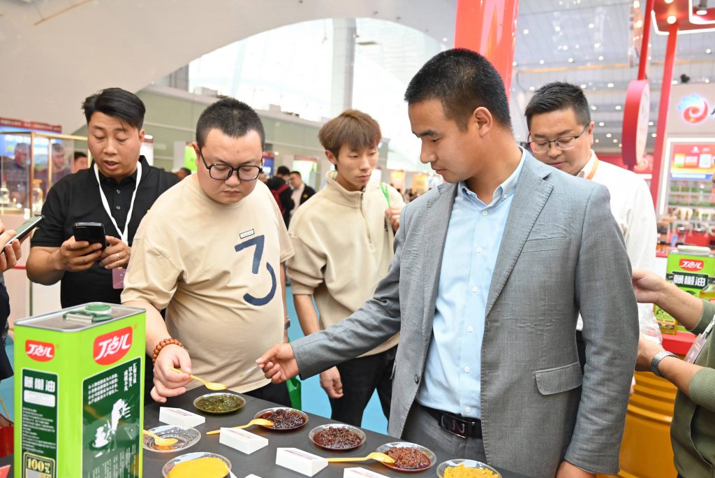 在調(diào)味品展區(qū),丁點(diǎn)兒食品展位成為了大家關(guān)注的焦點(diǎn)。從經(jīng)典的麻辣味型到當(dāng)下流行的椒麻味型,展位上陳列的每一款丁點(diǎn)兒高品質(zhì)特色川調(diào)產(chǎn)品都散發(fā)著誘人的香氣,呈現(xiàn)著獨(dú)特的川味風(fēng)情。