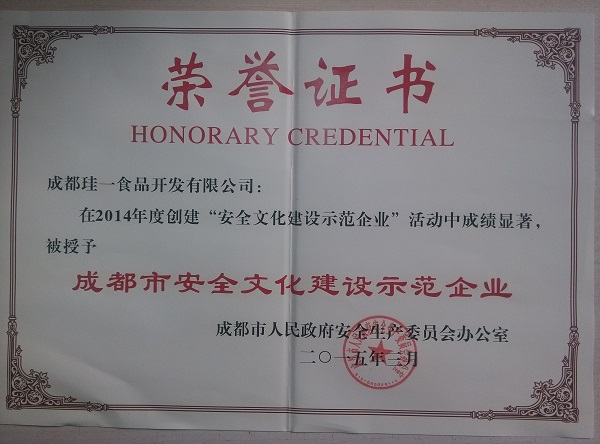 2015成都市安全文化示范企業(yè)證書