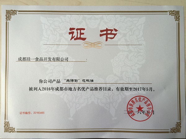 2016麻得倒花椒油名優(yōu)產(chǎn)品