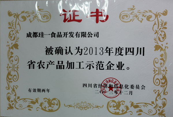 農(nóng)產(chǎn)品加工示范企業(yè)證書