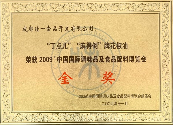 中國國際調(diào)味品及食品配料博覽會金獎