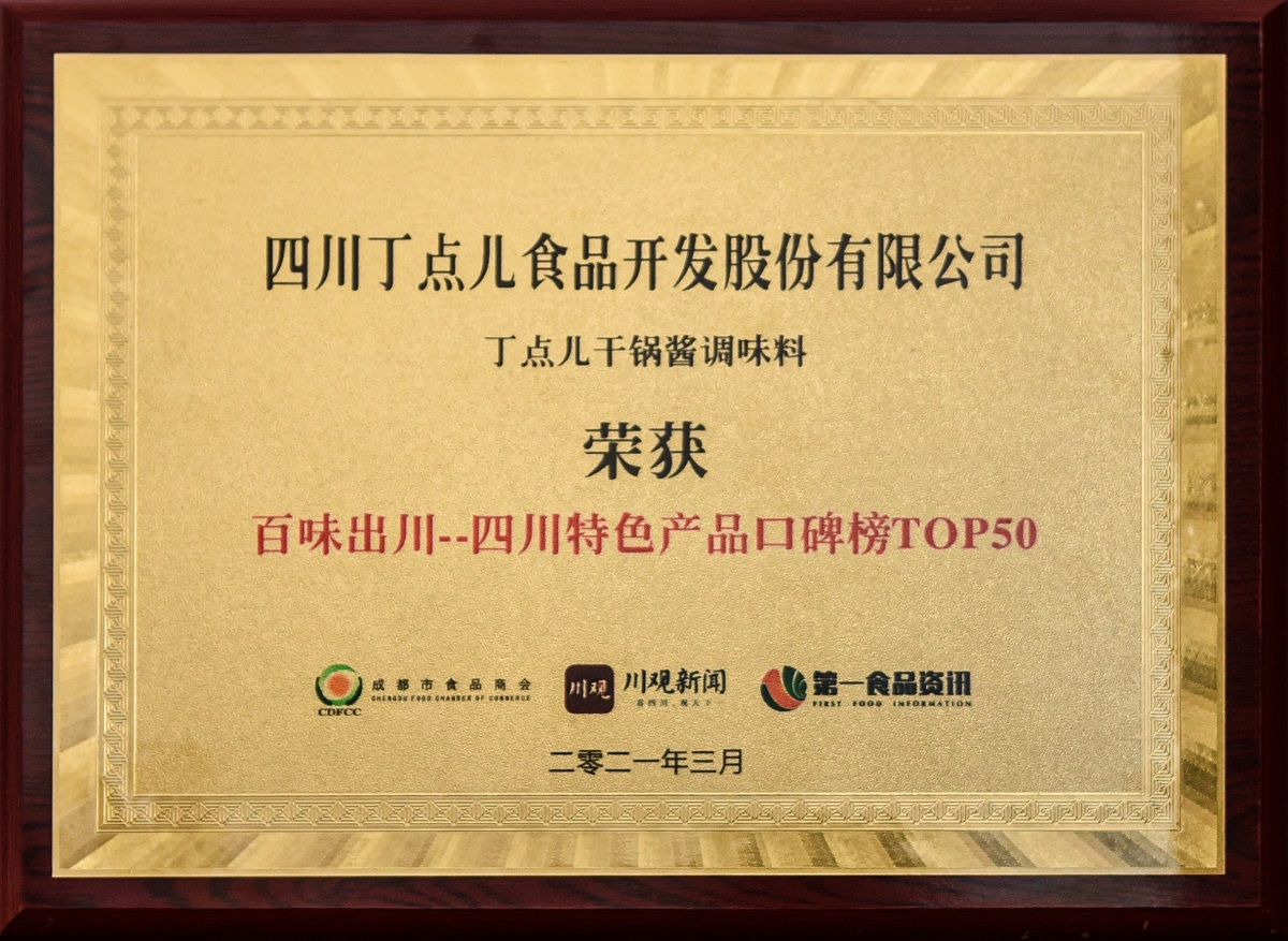 丁點(diǎn)兒干鍋醬調(diào)味料榮獲“2020百味出川·四川特色產(chǎn)品口碑獎(jiǎng)”